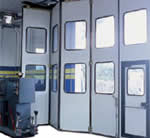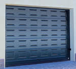 Porta sezionale a uso industriale, linea acciaio, pannelli coibentati a doghe orizzontali.